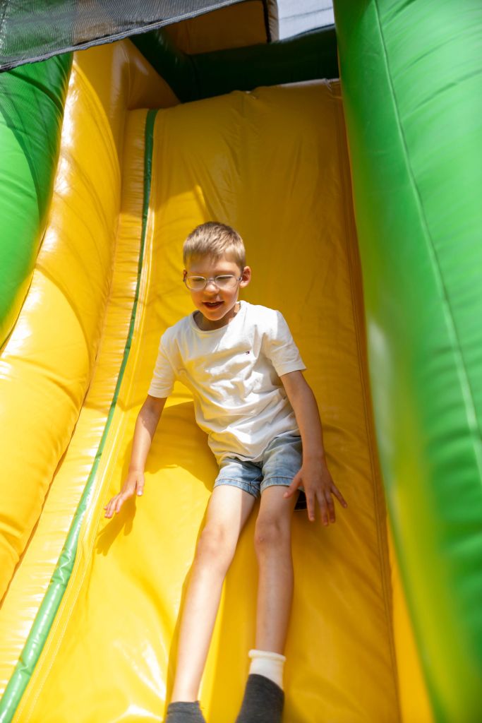Neben der Lymph-Therapie wurden die Kids durch Ehrenamtliche betreut und hüpften sich in einer Hüpfburg müde. (Hüpfen regt den Lymphfluss an und macht zudem Spaß) Auch sonst, war für viel Spielprogramm gesorgt.